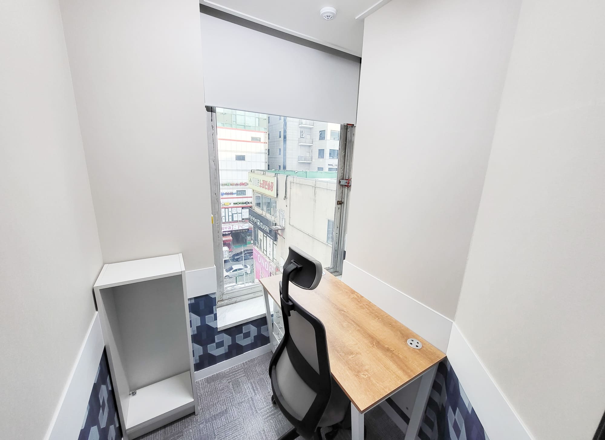 공유공간 홀공간카페테리아, 최신 복합기, 회의실로 연결되어 , 보다 편리한 동선을 제공합니다. 회의실24시간 365일 CCTV등을 통하여 보다 안전하고 쾌적한 환경을 제공하며, 회의실 사용도 언제든 가능 합니다. 통로공간개인별 완벽한 업무환경을 제공하며, 통로측도 큰 창 제공으로 개방감을 더했습니다. 카페테리아최신 원두커피머신기와, 각종 차 그리고 간단한 다과를 준비하였습니다. 1인 사무실 1인실 (창가 A타입)개방감 좋은 1인 창가사무실로써, 가성비 좋은 사무실입니다. 1인실 (창가B타입)개방감 좋은 1인 창가사무실로써, 개방감을 더한 사무실입니다. 1인실 (내측 A타입)합리적이고 가성비 좋은 1인 사무실입니다. 1인실(내측 B타입)합리적이고 가성비 좋은 1인 사무실입니다. 2인 사무실 2인실 (내측 A타입)합리적인 가격의 사무실로써, 내측 2인 사무실입니다. 2인실 (창가 A타입)2면이 창인 개방감과 사이즈 좋은 2인 사무실입니다. 이용안내 가격안내 오시는길